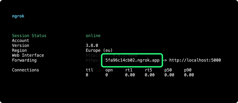 Twilio requires a publicly accessible URL. We’ll use ngrok to forward the local port of our application and expose it as a public URL. Run the following command in your terminal: