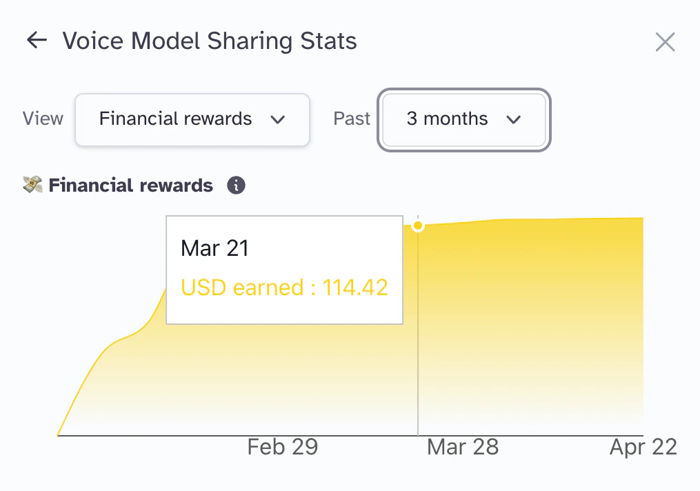 - The rewards you earn are based on the options you selected when sharing your voice in the Voice Library.